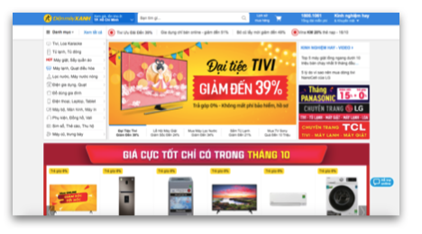 Dien May Xanh和上述的The Gioi Di Dong同属于 Mobile World Group。Dien May Xanh以线下零售超市为主,并已开设在线商店。