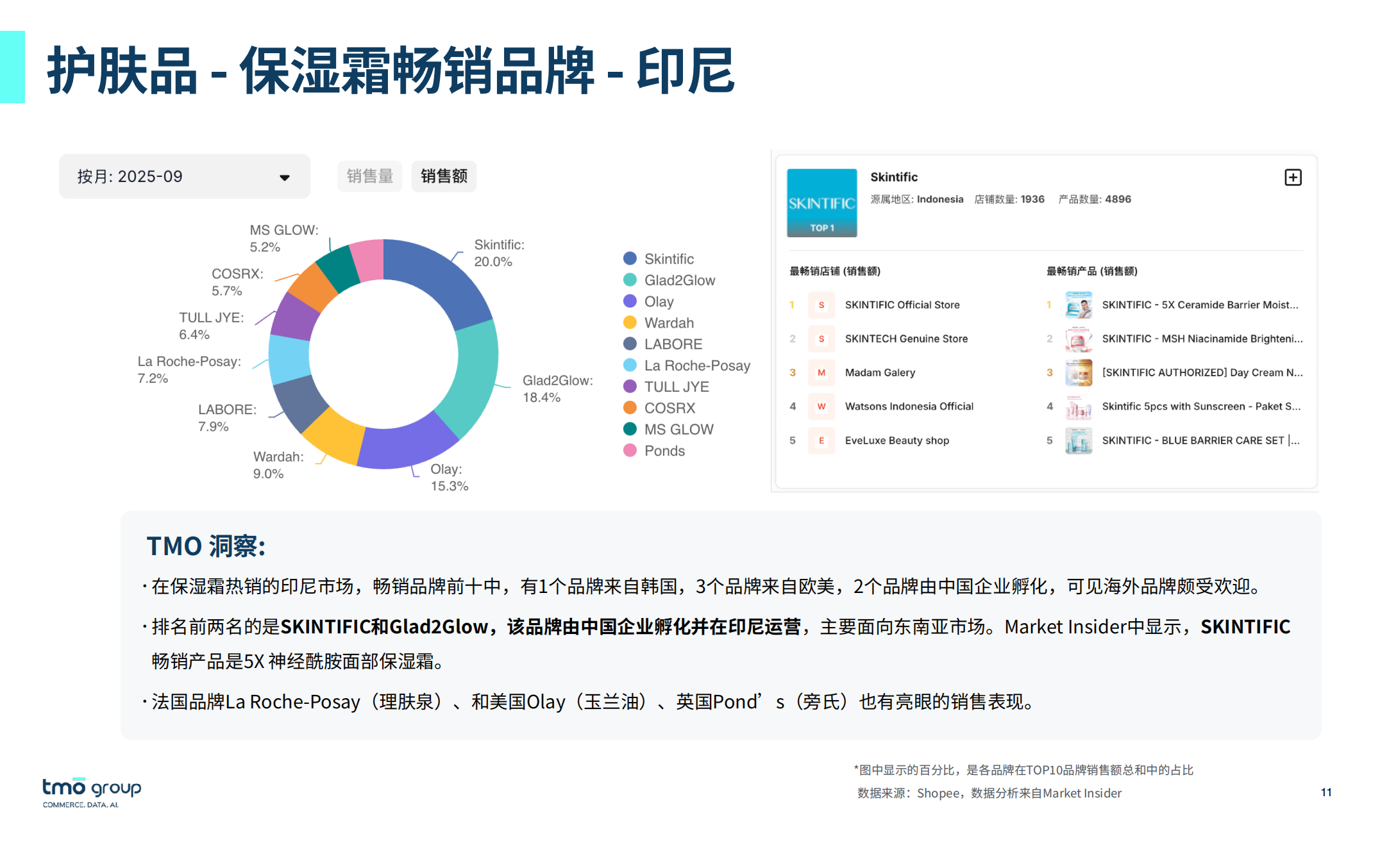 • 中国公司孵化的品牌在护肤领域成绩亮眼:中国公司孵化的品牌如SKINTIFIC和Glad2Glow优势明显。