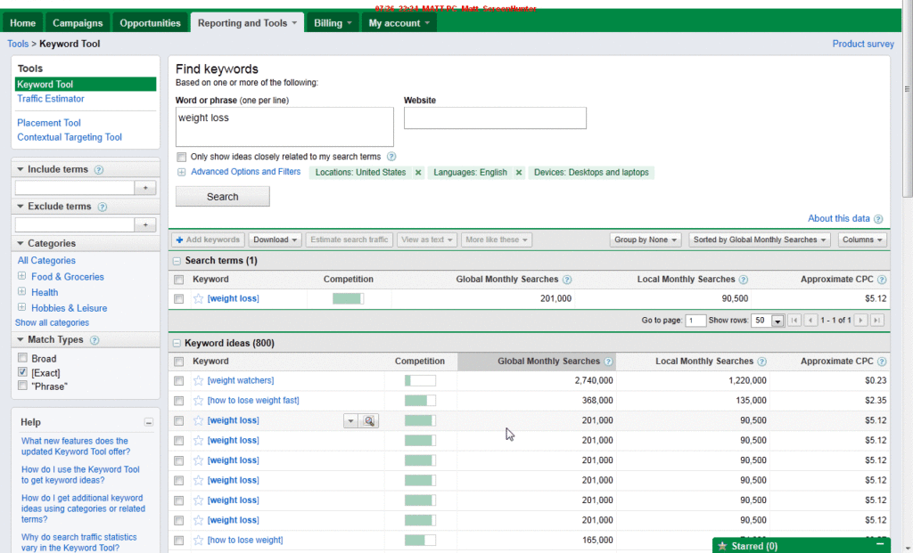 世界最出名的关键词推荐工具就是谷歌的关键词推荐工具(Google Keyword Tool),提供的关键词数据包括: